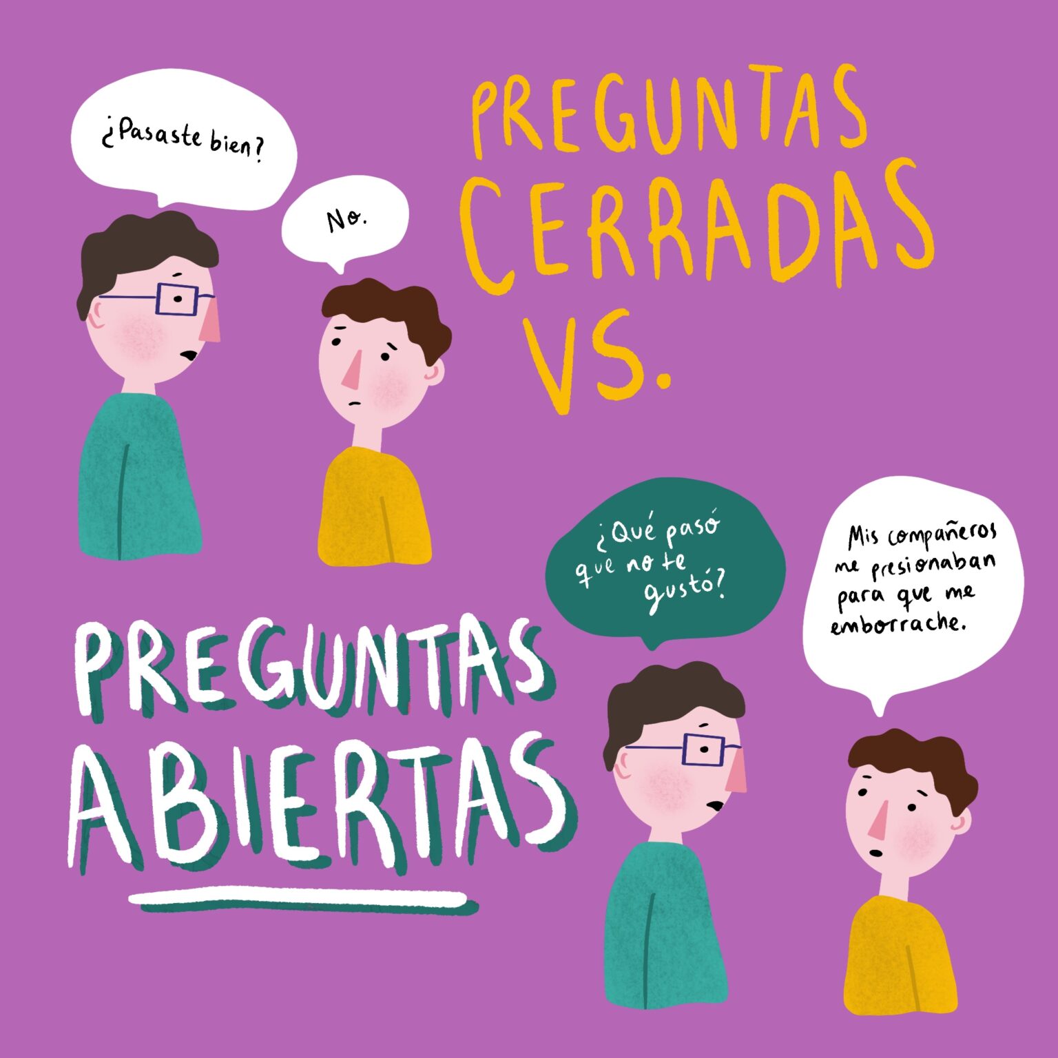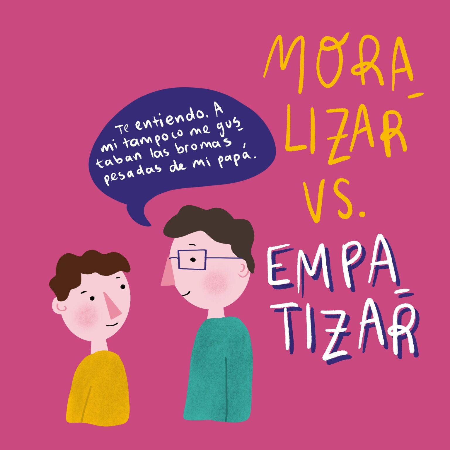 Los consejos o moralejas son la manera más segura de poner fin a una conversación. Una alternativa a dar consejos es escuchar e intentar recordar cómo te sentías cuando vos eras adolescente, cómo te hubiese gustado que te traten, te hablen y te respeten.