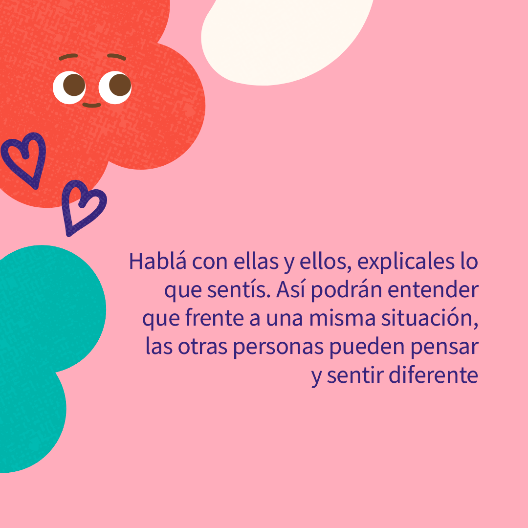Demostrá empatía a tu hija o hijo, es decir, ponete en su lugar, tratá de comprender lo que siente y piensa, desde lo que está viviendo en ese momento.
