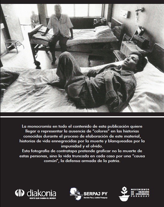 Esta investigación publicada en el 2012 por el Movimiento de Objeción de Conciencia y el Serpaj Paraguay deja por sentado que no se trata solo de una recopilación fría que enumera casos. “Este trabajo no busca ser un compilado único y definitivo de lo sucedido en cada caso, solo aspira a ser un registro con un poco más de contenido a fin de que no termine siendo una simple lista de números y nombres desprovista de toda humanidad. No son sólo 147 víctimas, son 147 hijos, hermanos, vecinos, amigos cada uno con una historia de vida por contarse.”
