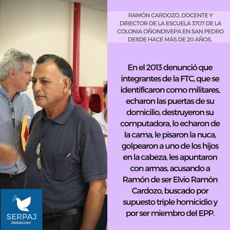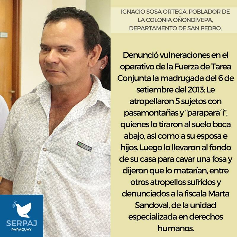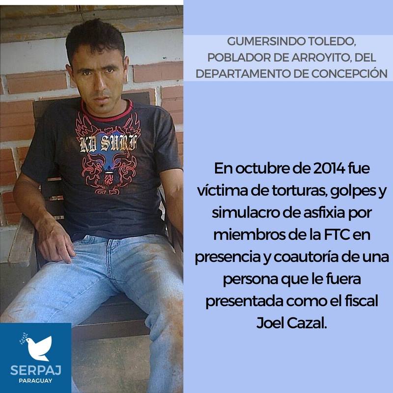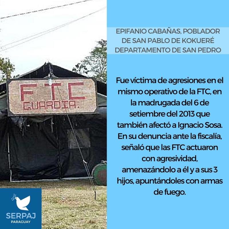 Las personas a cuyos casos se refiere la acción son: Ramón Denis Cardozo, Ignacio Sosa Ortega y Epifanio Cabañas, pobladores de Colonia Oñondivepá, en Nueva Germania, en el departamento de San Pedro, quienes sufrieron atropellos y agresiones en un operativo de las FTC entre la noche del 5 y la madrugada del 6 de setiembre del 2013; y Gumersindo Toledo, del asentamiento de Arroyito, en el departamento de Concepción, víctima de torturas, golpes y simulacro de asfixia por miembros de la FTC en octubre de 2014.