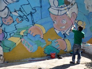 OZ Montanía, conocido artista callejero, coordinó la pintura, a la que además se adhirieron vecinos miembros de la Comisión Vecinal San José Obrero.
