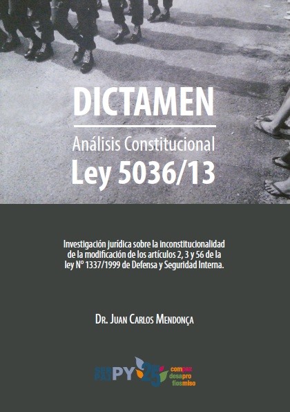 El Servicio Paz y Justicia, Paraguay, en el marco de una iniciativa que busca promover el debate y promover la elaboración de una agenda de acciones para la derogación de la Ley 5036/13 que modifica los artículos 2, 3 y 56 de la Ley de Defensa Nacional, difunde y comparte este trabajo de investigación realizado por el Dr. Juan Carlos Mendonça, sobre la inconstitucionalidad de la referida Ley.