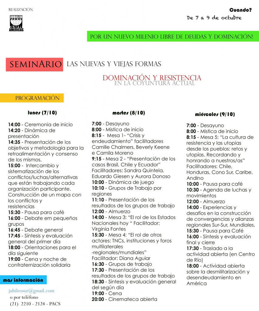 En ese sentido, esta IV Asamblea regional de Jubileo Sur/Américas se propone ser un espacio donde poder profundizar el trabajo y lucha que venimos dando contra la dominación de la deuda. Al mismo tiempo se plantea como el momento necesario para refundar nuestra red, de acuerdo a la realidad y coyuntura de cada sub-región, pero con la esperanza puesta en construir un Milenio libre de deudas y dominaciones, convencidos que es hora de avanzar para lograr la reparación de lo que nos han saqueado y construir verdaderas alternativas sobre la base de la justicia, la soberanía y la solidaridad entre nuestros pueblos y nuestros países en armonía con la Pachamama.