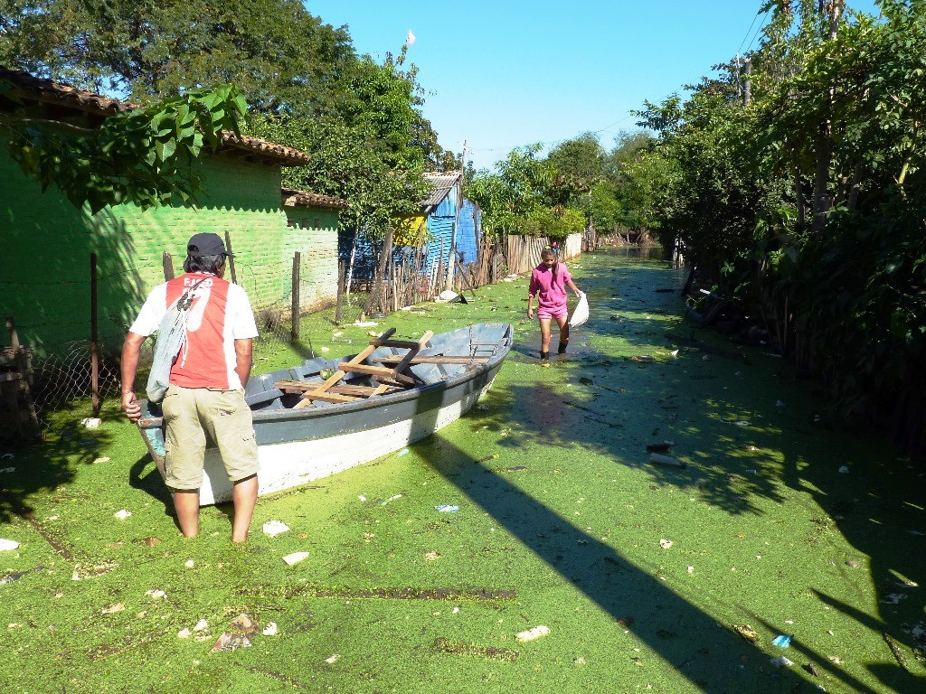 Semanas atrás, la profesora Selva Miranda había acordado con representantes de la COMUEDA, Consejo Municipal de Emergencia y Desastres de Asunción, que esa tarde vendrían con barcas pertinentes para ayudar al traslado de familias con viviendas anegadas. Eran familias de niños de su comunidad educativa, la escuela Caacupemí de Fe y Alegría, de la cual ella es directora.