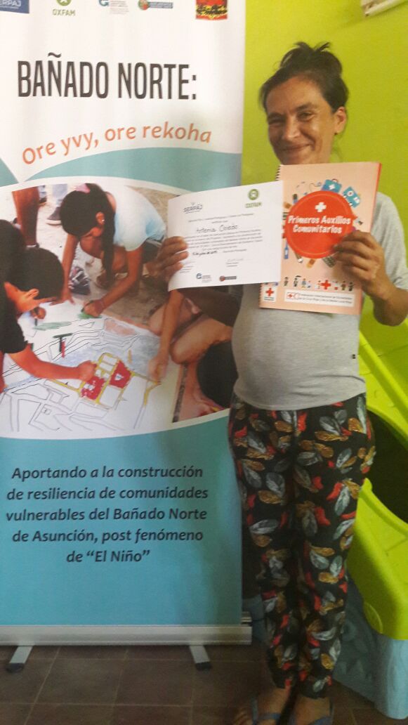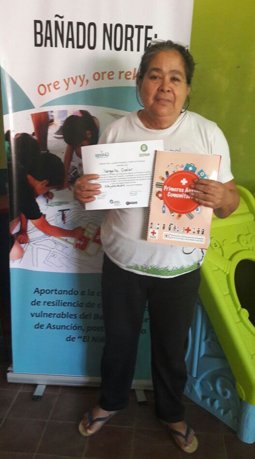 Margarita Ovelar, de la comunidad de San Agustín, dijo que fue clave para ella aprender sobre la asistencia a los accidentados frente a quemaduras, fisuras y luxaciones. “Me alegro de seguir aprendiendo”, agregó.
